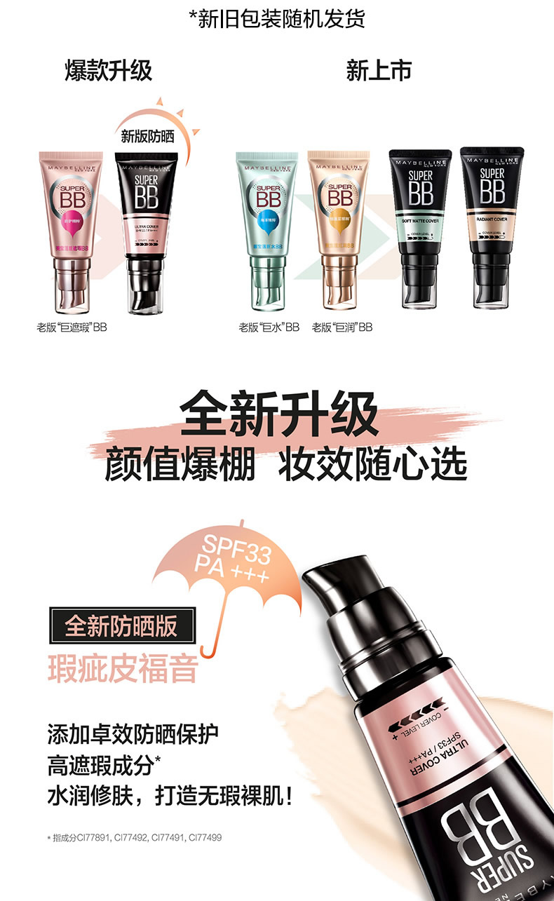 - 商品名称:美宝莲 (MAYBELLINE) 巨遮瑕新颜霜 30ML 象牙色 按压喷头 BB霜 遮瑕