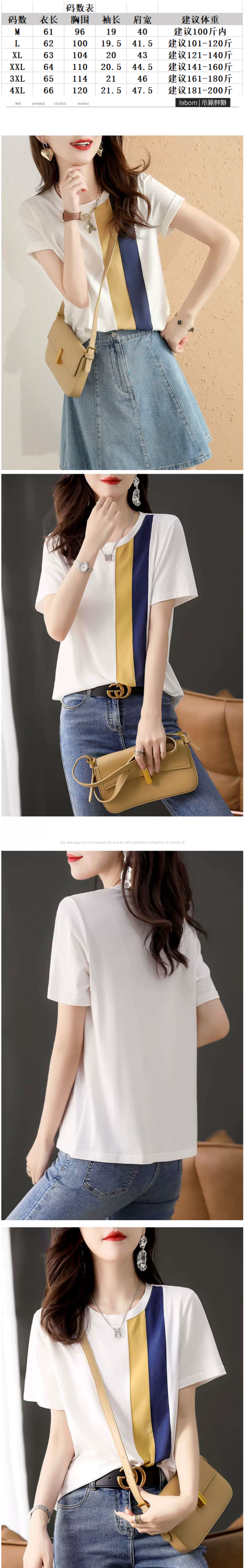 商品名称:纯棉正肩短袖t恤女士设计感拼接撞色打底衫夏新款时尚显瘦上衣潮